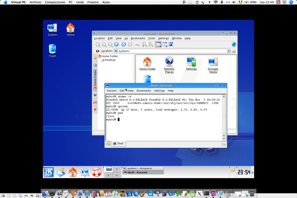 Le prove per la virtualizzazione su Mac con processore Intel sono state effettuate su un MacBook Pro Intel Core 2 Duo, 2.33 MHz con 2 GB di RAM (di recente portato a 3 GB).
